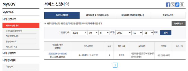 MyGOV에서 나의 신청내역에 들어가 주세요.
